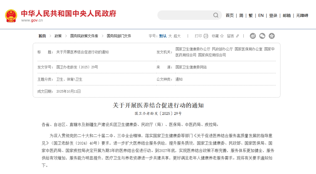 五部門(mén)發(fā)文:開(kāi)展醫(yī)養(yǎng)結(jié)合促進(jìn)行動(dòng)