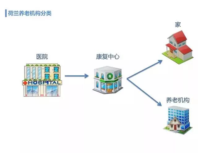 荷蘭法律規(guī)定,醫(yī)院的住院時間不允許超過6天。6天之后必須出院。一些老人因?yàn)橹酗L(fēng)或骨折等疾病從醫(yī)院出院后,會被安排在康復(fù)中心進(jìn)行為期2~8周最長不超過6個月的治療,康復(fù)中心在治療后,根據(jù)老人的恢復(fù)情況,再決定安排他們回家休養(yǎng),還是轉(zhuǎn)到養(yǎng)老護(hù)理機(jī)構(gòu)。