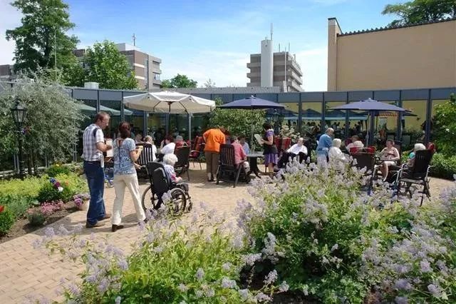 荷蘭的養(yǎng)老機(jī)構(gòu)中除長期照護(hù)的養(yǎng)老院之外,還有一種主要類型就是針對可自理老人的生活支持型的養(yǎng)老公寓。這種機(jī)構(gòu)一般會向老人提供包括餐飲、保潔、娛樂以及陪護(hù)等服務(wù),并與醫(yī)院、居家護(hù)理機(jī)構(gòu)保持緊密聯(lián)系,以中國人耳熟能詳?shù)?ldquo;荷蘭生命公寓”為代表。荷蘭生命公寓的建筑通常有個很大的特點(diǎn),就是公寓的建筑圍合出一個很大的采光中庭,擁有體量很大的共享空間,里面各種活動非常豐富,并對周邊社區(qū)開放。