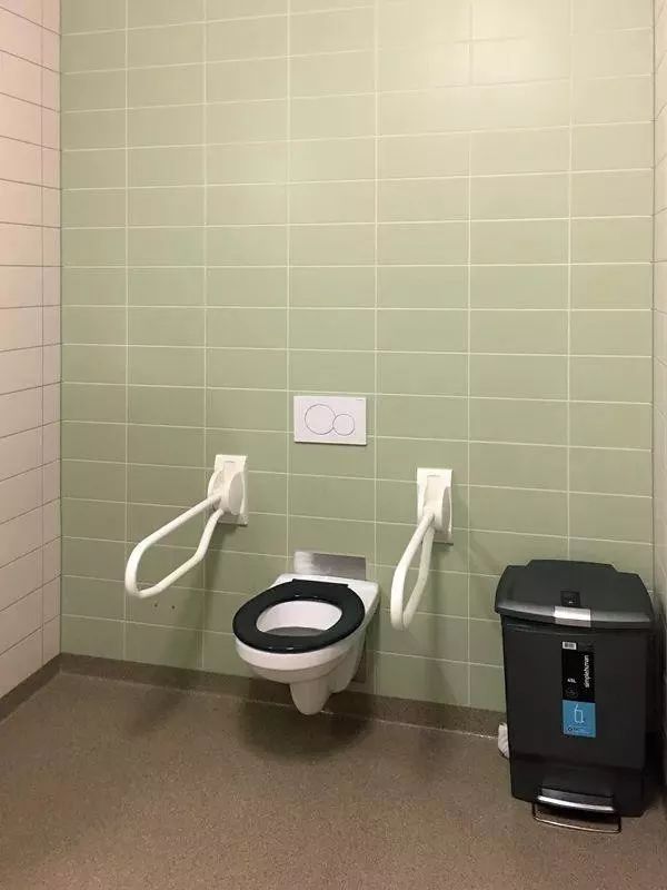 衛(wèi)生間一般根據(jù)建筑條件的不同,兩位老人共用一間,或一個單元共用3~4個衛(wèi)生間。 衛(wèi)生間的尺度都很大,除了適老化、無障礙的設(shè)計之外,還針對失智失能老人的特點(diǎn)進(jìn)行設(shè)計,比如考慮輪椅進(jìn)出以及助浴的需要,墻面地面色彩的對比也是精心設(shè)計的。