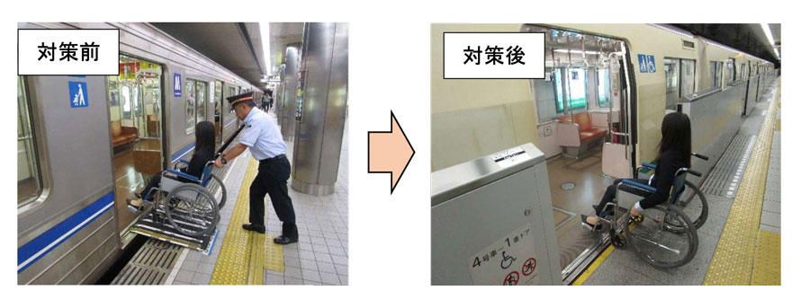 高度差的應(yīng)對措施:將靠近電車一側(cè)的站臺地面墊高,形成面向電車逐漸升高的斜坡,減少電車與站臺的高度差。