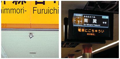 在各車輛乘降口上方設(shè)置了以4國語言顯示各種信息的顯示裝置,讓乘客更方便地了解電車的停車站點(diǎn)及換乘方法等信息。此外,不僅在車內(nèi)設(shè)置了隨著車門的開關(guān)響動的鈴聲,同時還正在推進(jìn)引導(dǎo)鈴的設(shè)置。該引導(dǎo)鈴可通過聲音通知乘客打開的車門所在位置。