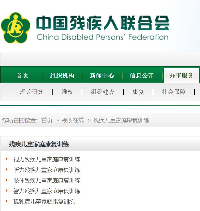 視頻包括視力、聽力、肢體、智力殘疾兒童和孤獨(dú)癥兒童康復(fù)訓(xùn)練內(nèi)容,由中央彩票公益金資助拍攝。