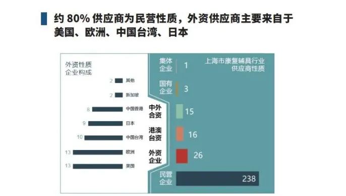 通過(guò)線(xiàn)下調(diào)研和線(xiàn)上企業(yè)信息數(shù)據(jù)庫(kù)的檢索,將上海市康復(fù)器具協(xié)會(huì)成員單位、在上海市注冊(cè)且主營(yíng)業(yè)務(wù)為康復(fù)輔具的企業(yè)、在上海市注冊(cè)且持有輔具專(zhuān)利等345家企業(yè)信息納入本次統(tǒng)計(jì)范圍,其中包括299家康復(fù)輔具供應(yīng)商和46家康復(fù)輔具服務(wù)企業(yè)。