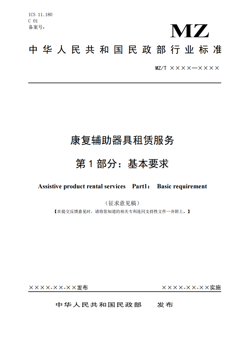 昨日下午,民政部網(wǎng)站最新發(fā)布了《康復(fù)輔助器具租賃服務(wù) 第1部分:基本要求》和《康復(fù)輔助器具租賃服務(wù) 第2部分:清洗消毒規(guī)范》行業(yè)標(biāo)準(zhǔn)征求意見稿。